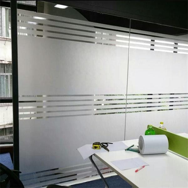 磨砂膜首先它是具有双面不透明的效果的,如果将它粘贴在透明的玻璃上面后可以让玻璃变成像是具有磨砂质感的磨砂玻璃一般,也正是由于这个原因,可以使得喜欢使用玻璃作为隔断的办公场所隐私得以有效保护。